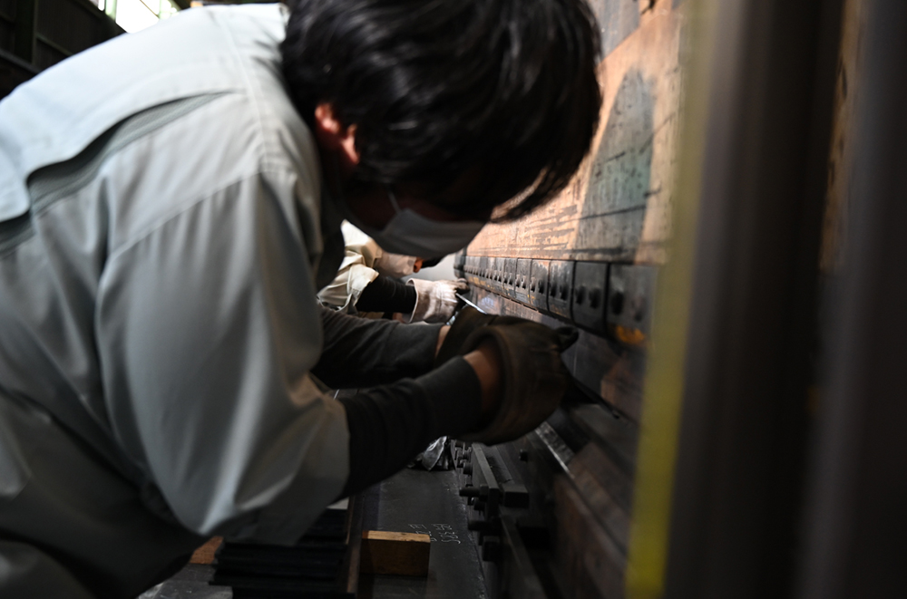 製品によっては、鉄板を曲げる工程が入ります。