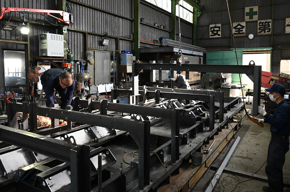 型枠の設計から鋼材の切り出し、加工、組み立てを行い、完成した型枠を全国各地の工場へ納入します。